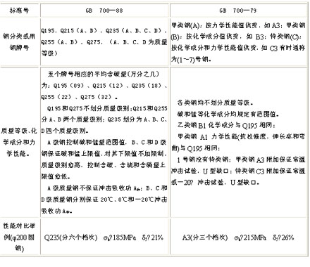 ?3 Q系列碳素結構鋼 碳素結構鋼新、舊標準的對比見表1。