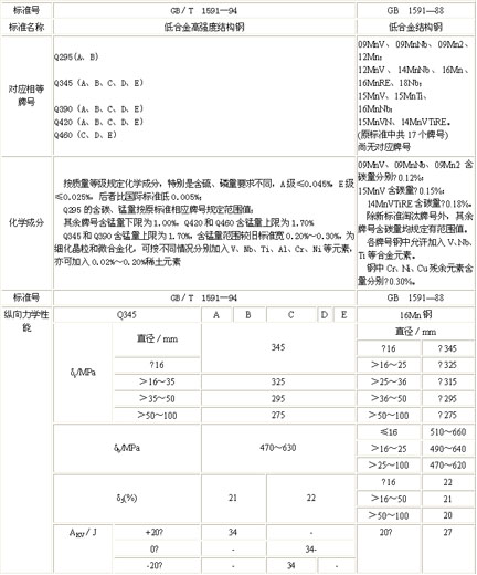 2 標準修訂情況 GB 700—79《普通碳素鋼技術條件》和GB/T 1591—88《低合金結構鋼》是修訂前的兩種常用的結構鋼標準:①GB 700—79標準早已修訂為GB 700—88《碳素結構鋼》標準,1988年10月1日實施,3年內原標準GB 700—79同時有效,1991年GB 700—79標準作廢,至今已有7年多了。②GB 1591—88標準也已修訂為GB/T 1591—94《低合金高強度結構鋼》標準,1995年7月1日實施,原標準GB 1591—88標準即行作廢,至今已3年之多?! ⌒抻喓髢蓚€標準的最大特點之一,是打破了舊框框的牌號命名方法而采用國際標準。由屈服點漢語拼音字頭(Q)、屈服點數(shù)值(×××MPa)和質量等級(A、B、C、D……)表示,有時還附一脫氧方法,舊標準中的用鋼牌號A3、16Mn等均已被淘汰,不再使用。